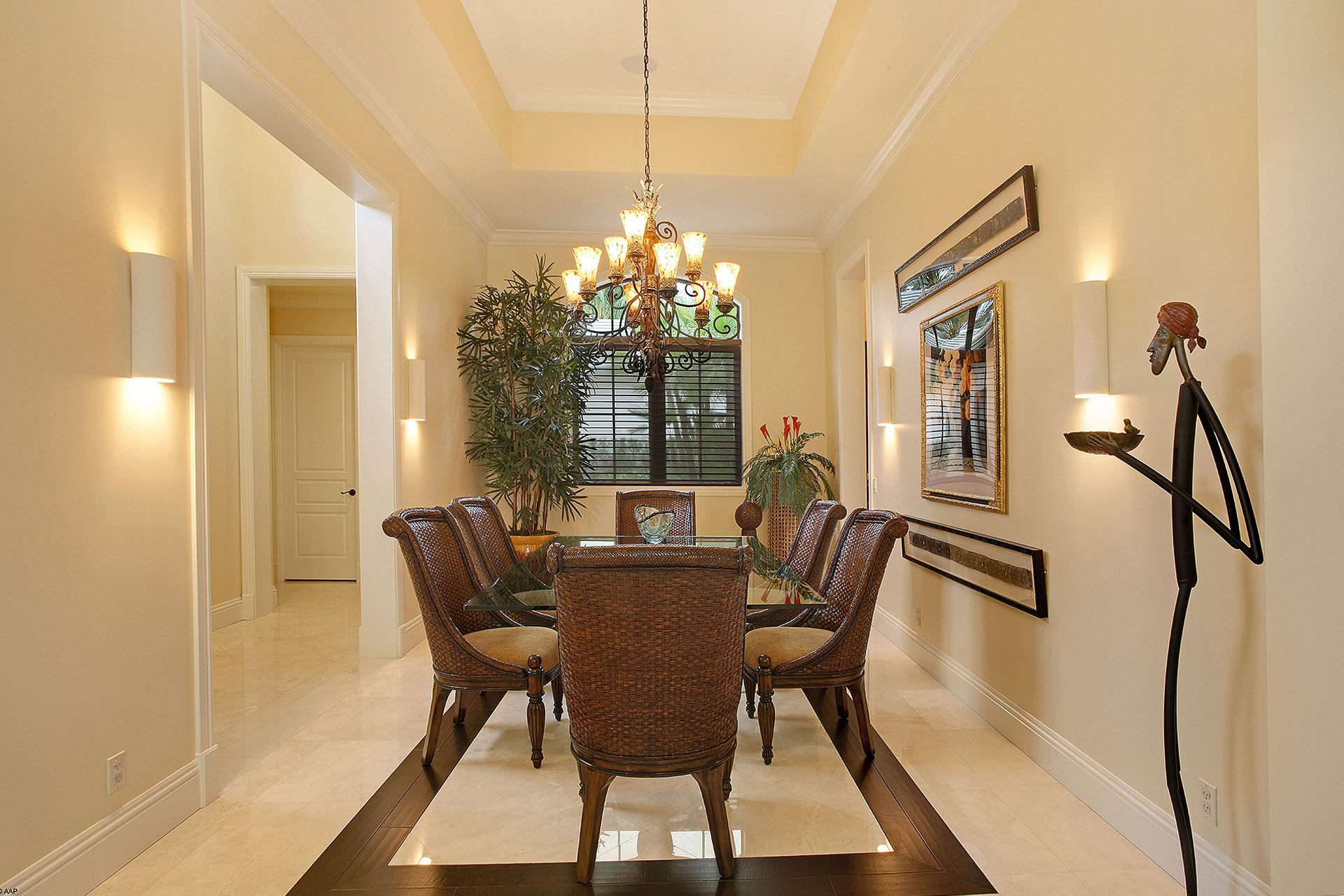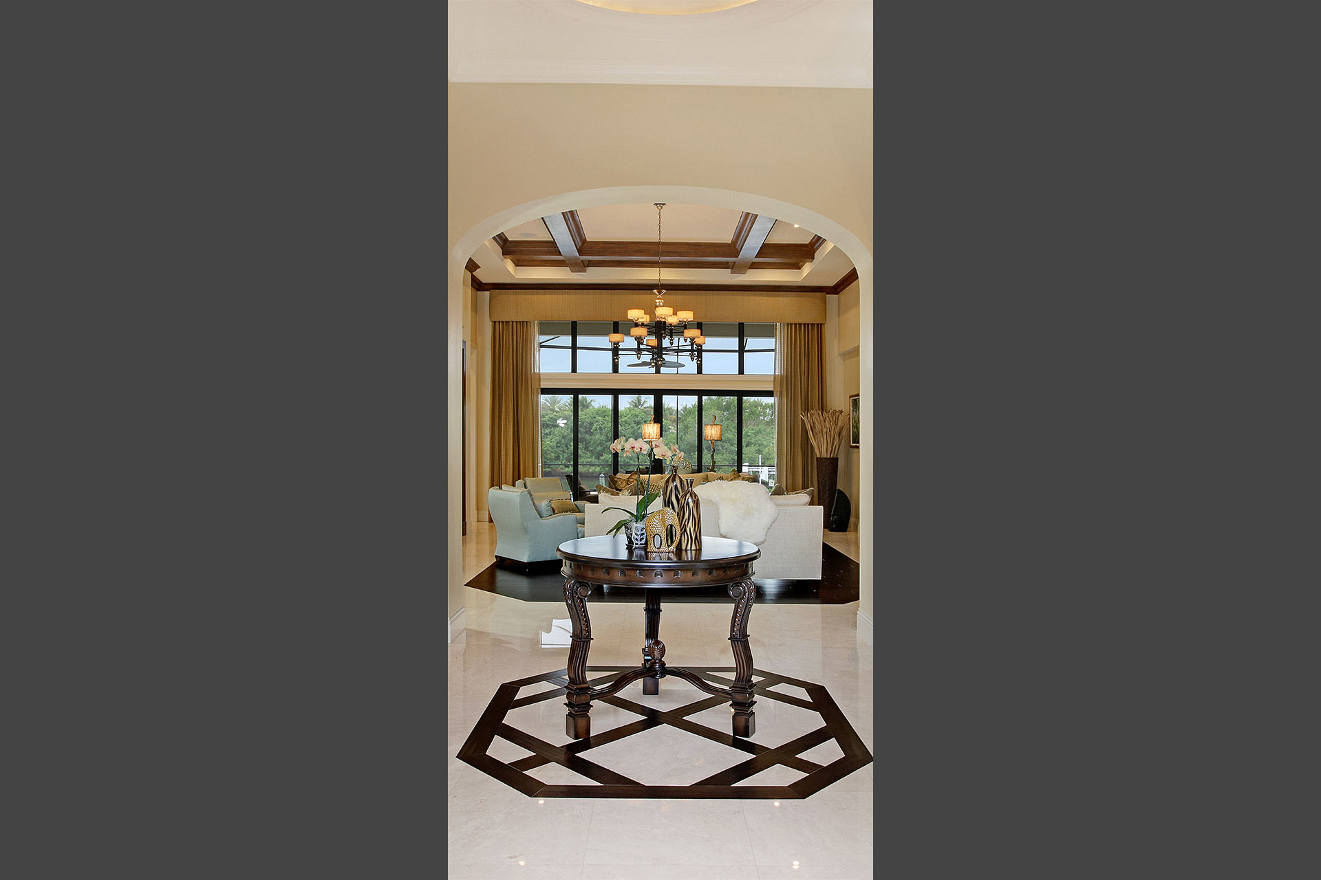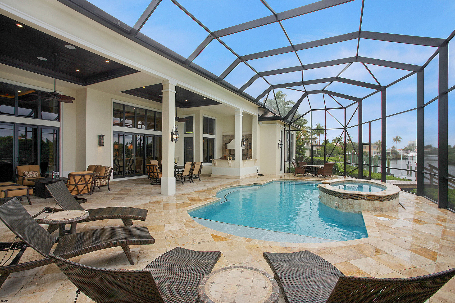 Fantastic use of dark wood throughout this modern Mediterranean creates a warm, tropical sanctuary for waterfront living in Jonathan’s Landing golf course community. Expansive screened in patio and pool area offers splendid outdoor entertaining.