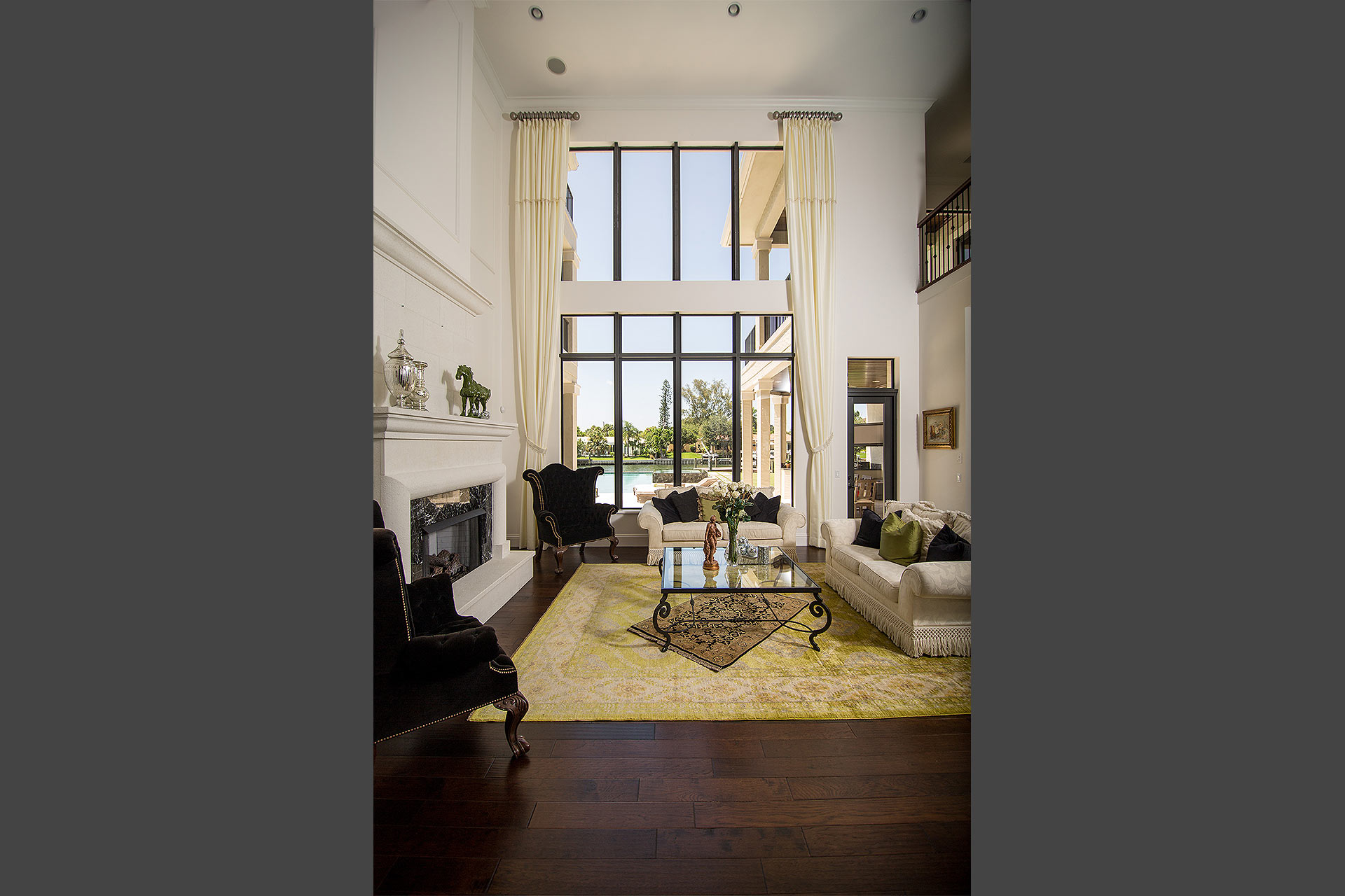 White panel walls and checkered floors -old world Mediterranean meets modern craftsmanship. Superb, waterfront pool deck and a private boat dock inspire tranquil South Florida living.